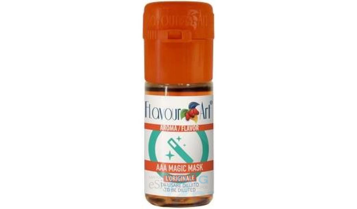 Magic Mask компании FlavourArt — специальный смягчитель вкуса. Представленный концентрат не привносит в пар каких-либо новых нот, однако эффективно заглушает чересчур выдающиеся тона, особенно слишком кислые. Рекомендуется использовать Magic Mask FA в миксах в концентрации около 1%.