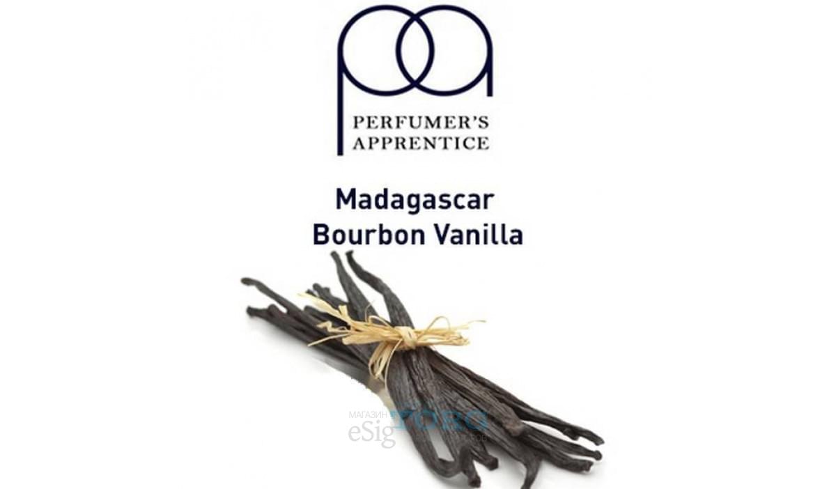 Бурбонская ваниль, выращенная на Мадагаскаре, обладает сладким и натуральным ароматом. «Парфюмерам» удалось достаточно точно воссоздать этот вкус, в основе которого лежат натуральные ароматизаторы. Рекомендуется смешиваяать Madagascar Bourbon Vanilla от TPA в концентрации 2% (в миксах) и 10% в соло.